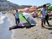 Edinilen bilgiye göre, eşi Cemile Demir ile birlikte Alanya`da Güllerpınarı Mahallesi`ndeki Galip Dere Plajı`na gelen 63 yaşındaki Battal Demir, bir süre kumsalda güneşlendi. Serinlemek için denize giren kalp hastası Demir, kıyıdan yaklaşık 15 metre mesafede yüzerken bir anda çırpınmaya başladı. Vatandaşlar tarafından kıyıya çıkartılan Demir, olay yerine çağrılan sağlık ekiplerinin tüm müdahalesine rağmen kurtarılamadı. CENAZE ŞEMSİYE İLE KORUNDU Demir`in cenazesinin üzerine güneşten etkilenmemesi için plaj şemsiyesi konulurken, şemsiyenin devrilmemesi için ise bir görevli başında bekledi. Cenazenin plajda bekletilmesi sırasında ise diğer tatilciler denize girmeye ve güneşlenmeye devam ettiler