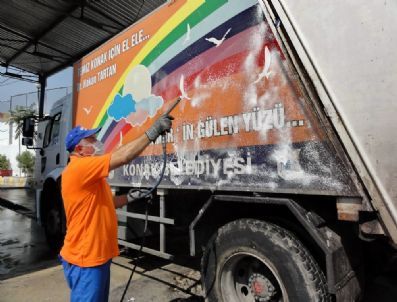 Çöp kamyonları tepeden tırnağa deterjanlı sular ile yıkanıyor, kokular sıkılıyor, araçların içi ve dışı elden geçiriliyor, son denetimler yapıldıktan sonra tertemiz olarak göreve uğurlanıyor. Sefere çıkmaya hazırlanan araçların hizmet verilirken sıkıntı yaratmaması için öncelikli olarak teknik bakımları yapılıyor. Ardından temizlik için özel bölüme geçen çöp kamyonları burada pırıl pırıl temizleniyor ve göreve hazır duruma getiriliyor.Konak Belediye Başkanı Hakan Tartan, çöp kamyonlarının kötü kokular yaydığı konusunda vatandaşlardan zaman zaman şikayetler aldıklarını hatırlattı. Başkan Tartan,”Çöp kamyonlarında temizlik yapılmadan göreve çıkmalarına izin vermiyoruz. Çünkü havaların ısınması ve aşırı nem, doğal olarak çöplerin kısa sürede kokmalarına neden oluyor. Bunun önüne geçmek için temizlik işini sıkı tutuyoruz. Kamyonları yıkıyoruz, temizliyoruz ve mis gibi kokular arasında çöp toplamaya gönderiyoruz. Vatandaşlardan çöp kamyonlarının koktuğu konusunda bundan yakınma gelmeyecek” dedi.