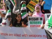Aralarında kadın ve çocukların da bulunduğu yaklaşık 50 kişilik grup, Rusya Konsolosluğu önünde bir araya gelerek Rusya`nın BM Güvenlik Konseyi`nde Beşar Esad ve yönetiminin zulmünü desteklemesi nedeniyle eylem yaptı. Ellerinde Türkçe, İngilizce ve Arapça pankartlar taşıyan grup, bir süre Arapça sloganlar attı.