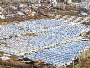 Van’daki depremlerin ardından depremzedelerin geçici barınması için il merkezinde 15 bin konteynerden oluşan 21 konteyner kent kurma çalışmaları, havadan görüntülendi.