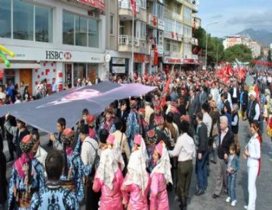 Vali Al ve protokol ile birlikte binlerce öğrenci ve vatandaş 10. Yıl Marşı eşliğinde Adnan Menderes Bulvarı güzergahında yürüyüşe başladı.