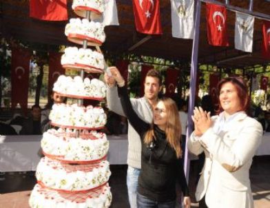 Belediye tarafından törene katılanlara yemek ikramının da yapıldığı tören çiftler adına bir çiftin nikah pastasını kesmesi ile sn buldu .