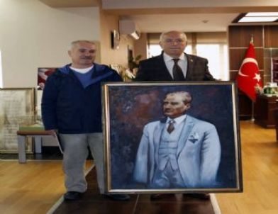 Usta Ressamdan Başkan Yaşar’a Atatürk Tablosu