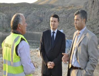 Siverek Kaymakamı Hamza Erkal, Nissibi Köprüsünde incelemelerde bulundu, baraj gölünde su sporlarının yapılması amacıyla çalışmalar yapılacağını söyledi.