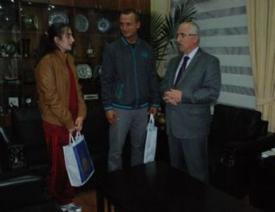 Çanakkale’nin Biga ilçesine bağlı Karabiga beldesindeki Mustafa Kemal İlköğretim Okulu öğretmeni Semih Eryamanlı ve basketbol takım kaptanı Lale Elif Yeşil, Vali Güngör Azim Tuna’yı makamında ziyaret etti. Vali Tuna, Çanakkale’yi temsil eden Eryamanlı ve Yeşil’e teşekkür ederek, “İlimizi en güzel şekilde temsil ettiğiniz ve şampiyonluk getirdiğiniz için ayrıca gurur duyduk. Çanakkale’nin sporda daha iyi yerlere geleceğini zaten biliyoruz. Karabiga’da bu başarı elde edildikten sonra ümitleniyoruz ve başarılarınızın devamını diliyoruz. Ayrıca siz çalıştırıcısı olarak çocuklarımızı bu seviyelere çıkartıp şampiyonluk kazandırdığınız için teşekkür ediyorum. Hiçbir başarının tesadüf olmadığını, azimle çalışarak nice başarılar yakalandığını günlük hayatımızda çok iyi gözlemleyebiliyoruz. Elbette ki siz saygı değer hocalarımızın bu başarıda rolü çok büyük. İmkânlar bakımından zengin olmasa da çok önemli başarılara imza atan öğrenci ve öğretmenlerimizin bu tarz başarıları örnek teşkil etmektedir. Karabiga’daki minik basketbolcularımızı Türkiye derecesi elde ettikten sonra okullarında ziyaret etmiş ve gözlerindeki parıltı bizler için geleceğe daha güvenle adım atmamızı sağlamıştır. Hem cumhuriyet resepsiyonu hem de 30 Ağustos resepsiyonunda öğrencilerimiz ve başarılı sporcularımızı davet ederek onların da temsilini önemsedim. Çünkü bu tarz başarıların her zaman desteklenmesi lazım” dedi