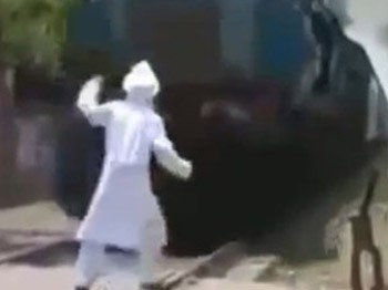 Hindistan’da yaşlı bir adamın çevresindekilere etkilemek için rayların üstüne çıkıp kendisine doğru gelen trene meydan okuması, kameralara yansıdı.