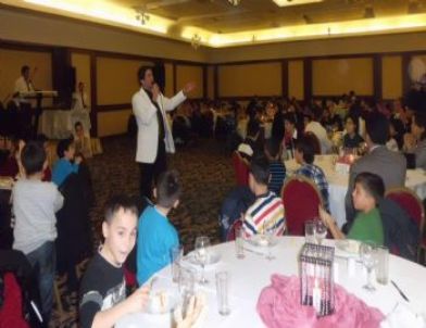 Konuşmaların ardından orkestra eşliğinde doyasıya eğlenen çocuklar, yılbaşı pastası kesti.