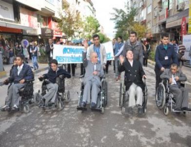 Protokol eşliğinde yürüyen engelliler ve vatandaşlar , Cengiz Topel Meydanı’ndaki kutlama programına katıldı .