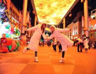 2003 yılında yapılan ve iki dev alışveriş kompleksleriyle birlikte 40 milyon dolara mal olan Shimaotianjie’nin (The Place) akşam manzaraları ziyaretçilere keyifli anlar yaşatıyor. Her yarım saatte bir renkli animasyon görüntüleriyle büyük ilgi gören dev LCD paneli, büyüleyici iklimiyle özellikle gençlerin ve turistlerin akşamları uğrak yeri konumunda. Yaz akşamlarında ve özel günlerde tıklım tıklım dolan The Place, şimdilerde yeni yıl için süslendi. Batı tarzı yeni yıl figürleriyle donatılan bu yer, soğuk havaya rağmen ziyaretçi akınına uğruyor. Renkli animasyon görüntülerin, ekrandan yere yansıması ise renkli görütüler oluşturuyor. Manzarayı seyreden halk, burada hatıra fotoğrafı da çektiriyor. Cihan Haber Ajansı’na konuşan gençler, buraya akşam manzarasının büyüleyici olduğu için geldiklerini ve vakit buldukça akşamın keyfini dev ekranın altında yürüyerek çıkardıklarını belirtiyor. Arkadaşlarıyla The Place’a gelen Wang isimli bir kadın, burada yeni yıl dileklerini dile getirdi. "Ailemin ve arkadaşlarımın mutluluğu ve sağlıklı olmalarını diliyorum’’ diyen Wang’ın arkadaşı da "Yılbaşında ailemle birlikte olmak ve güzel vakit geçirmek istiyorum.’’ diye konuştu.
