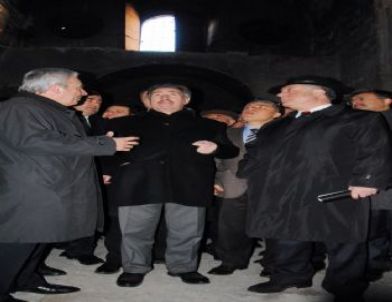 İzmir'e gelen Kültür ve Turizm Bakanı Ertuğrul Günay, tarihi Kemeraltı Çarşısı'nda incelemelerde bulundu, tarihi yapıları ve hanları inceledi.