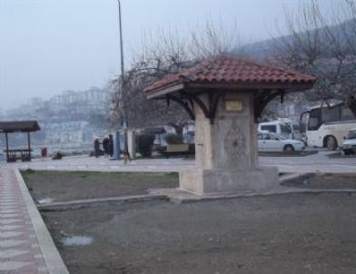 Bursa'nın Gemlik ilçesinde iskele meydanına yapılan çeşme musluklarından su akacağı günü bekliyor.