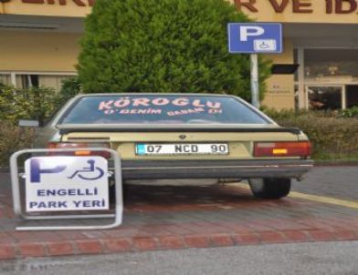 Antalya'nın Alanya ilçesinde Devlet Hastanesi'nin engelli otoparkına bırakılan, "Köroğlu'nun oğlu.O benim babamdı" yazılı aracı görenler gülümsemeden edemedi.