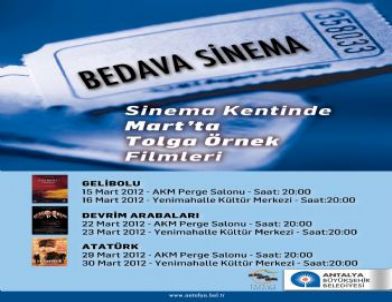 Proje kapsamında her ay ayrı bir ünlü Türk yönetmenin filmleri gösterilecek. 'Bedava Sinema' kapsamında Mart ayında yönetmen Tolga Örnek'in filmlerinin gösterimi yapılacak.