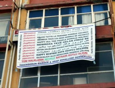 Hatay'ın İskenderun ilçesinde faaliyet gösteren Mardinliler Yardımlaşma ve Dayanışma Derneği (Mar-Der) ile Arap Mıhallemi dernekleri, 12 dilde hazırladıkları pankart ile Nevruz Bayramı'nı kutladı.