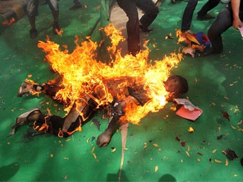 Hindistan'ın başkenti Yeni Delhi'de bir Tibetli, Çin Devlet Başkanı'nın ülkeye yapacağı ziyareti protesto etmek için kendini yaktı.