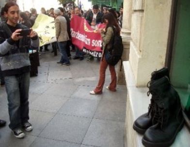 Grup açıklamanın ardından 40 TL’ye aldıklarını belirttikleri asker postallarını TÜSİAD binası girişine bırakarak olaysız dağıldı. Postallar, grubun gitmesinin ardından yoldan geçen bir ayakkabı boyacısı tarafından alındı.