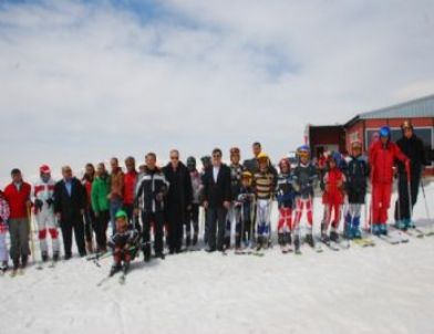 Konuşmalardan sonra kayakçılar tarafından kayak gösterileri sunulurken, gelen misafirlere sucuk ekmek ikram edildi .