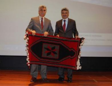 Panelin sonunda Başkan Büyükaslan tarafından Prof. Dr. Fendoğlu'na el dokuması kilim hediye edildi .