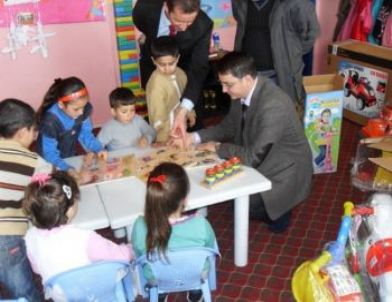 Atasoy, kendi elleriyle oyuncakları çocuklara dağıttı.