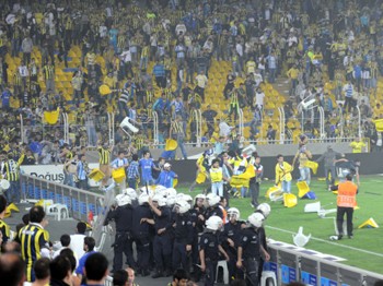 BBC, hakem maça son verdiğinde taraftarların plastik sandalyeleri kırarak polise ve Galatasaray oyuncularına attığını, şiddetin stadın dışında da devam ettiğini, Fenerbahçe taraftarların bir polis aracına taş attıklarını, çöp konteynerlerinin devrildiğini, dükkanların vitrin camlarının kırıldığını de belirtti.