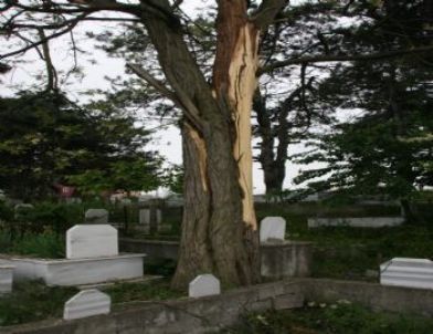 Çelik, “Gece saatlerinde mezarlığa yıldırım düştü. Ben gece uyuyordum. O sesle yataktan kalktım. Deprem oluyor sandık. Sabah dükkana giderken, ağacın dallarının yola düştüğünü gördüm. Dükkanımda da elektrikler yoktu, elektrik saatim de yıldırım nedeniyle patlamış. Allah’tan can kaybı yok” dedi.