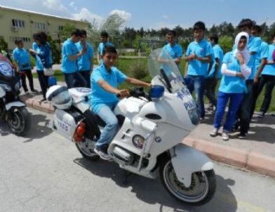Çevik Kuvvet Şube Müdürlüğü tarafından da toplumsal olaylara müdahalede kullanılan TOMA ve Panzer araçlarını yerinde inceleyen öğrenciler, trafik polislerine ait olan motosikletler ile bol bol hatıra fotoğrafı çektirdi.