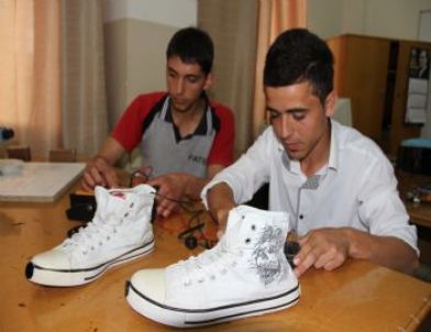 Erzincan Fatih Teknik ve Endüstri Meslek Lisesi öğrencileri görme engelli vatandaşlar için hareket sensörlü, ayakkabı ve baston yaptı.