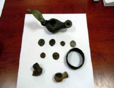 Edinilen bilgiye göre, Aydın Emniyet Müdürlüğü Kaçakçılık ve Organize Suçlarla Mücadele Şube Müdürlüğü ekipleri tarafından Tarihi Eser Kaçakçılığı, Uyuşturucu Madde Bulundurmak ve Kullanmak ile İzinsiz Kenevir Bitkisi Yetiştirmek suçlarının önlenmesine yönelik yapılan çalışmalarda Aydın merkezde ikamet eden G.Y isimli (31) şüphelinin ikametinde arama yapıldı. Yapılan aramada 2 adet Bronz Roma dönemi ait, 2 adet Bronz Doğu Roma dönemine ait, 1 adet Bronz İslami döneme ait ve 1 adet Gümüş Avrupa dönemine ait sikke olmak üzere toplam 6 adet sikke, 1 adet Bronz Geç Roma dönemi Kandil, 2 adet P.T. İslami dönem lüle ve 1 adet bitkisel bezemeli İslami dönem Bronz Bilezik olmak üzere toplam 10 parça tarihi eser ile 6 kök Hint keneviri bitkisi ve 50 gram esrar maddesi ele geçirildi.