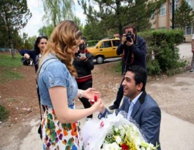 Ardahan'da görev yapan pratisyen hekim Volkan Aktemur (23), CÜ Sağlık Yüksekokulu son sınıf öğrencisi kız arkadaşı Tuğçe Göksun’a (22) ilginç bir evlenme teklifi yaptı. Bir organizasyon şirketiyle anlaşan Aktemur, kız arkadaşıyla tanıştığı CÜ Tıp Fakültesi Araştırma ve Uygulama Hastanesi'nin önüne balonlarla süslediği, "Benimle evlenir misin Tuğçe? Seni seviyorum" yazılı pankartı astı. Aktemur, bir arkadaşının yardımıyla kız arkadaşını hastanenin önüne davet etti. Buluşma yerine gelen genç kız, gördüğü manzara karşısında şaşkınlığını gizleyemezken, Volkan Aktemur, elindeki çiçek ve yüzükle evlenme teklifi etti. Tuğçe’nin, ‘Evet’ cevabı vermesiyle balonlar havaya bırakılırken, çevredeki kalabalık da gençleri alkışladı.