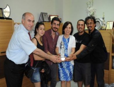 Oyunevi Tiyatro Topluluğu oyuncuları Sağlık Kültür ve Spor Dairesi Başkanı Aydın Özdemir ile birlikte aldıkları ödülü Akdeniz Üniversitesi Rektör Yardımcısı Prof. Dr. Meral Gültekin'e takdim ettiler .