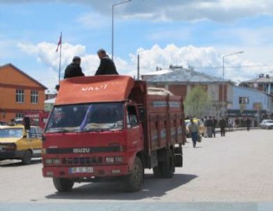 Kars'ın Selim İlçesi’nde hayvan yüklü bir kamyonetin bagaj kısmında yolculuk eden vatandaşlar, tehlikeye aldırmadan ilginç bir yolculuk ettiler.