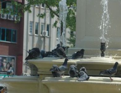 Cumhuriyet Meydanı Çorlu Belediye binası önünde yer alan saat kulesini mesken tutan ve burada vatandaşların ilgi odağı olan güvercinler de ısınan havalar ve artan hava sıcaklıklarından nasibini aldı.