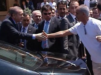 Namaz çıkışı Erdoğan'ın yanına yaklaşan bir turist 'Es Selamün Aleyküm ' dedi. Bunun üzerine Başbakan Erdoğan da turistin elini sıkarak, 'I love You ' diye cevap verdi.