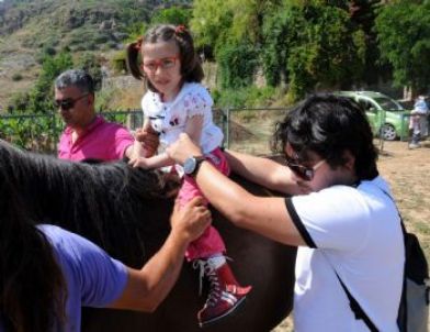 Alanya İlçesinde, engelli çocukların gelişimi amacıyla 'Adaptif Binicilik Terapisi' uygulandı.