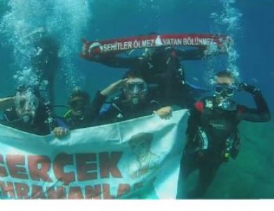Şehit haberlerinin arttığı bugünlerde Bodrum'un derinliklerinde dalgıçlar asker selamı durarak şehitleri andı.