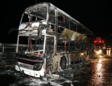TEM Otoyolu Bolu Dağı mevkiinde sabaha karşı motor kısmından yanmaya başlayan yolcu otobüsünde ki 66 yolcu ölümden döndü.