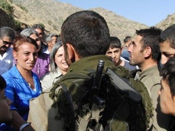 Gezi sıradan başladı. Önce Bağlar köyüne gidildi. Yaklaşık bir saat sonra oradan ayrılıp, Güzelkaya mezrasına dönmek üzereyken, kavşakta önümüzdeki araçlar duruyor. Biri genç kız beş PKK 'lı hemen önümüzde. Ellerinde Kalaşnikoflar, birinde Kanas var. Gençler. Türkçe biliyorlar. Belli ki grubun içinde akrabaları da var. Bazıları birbirlerine sarılıyor. Hasret gideriyor. BDP Eş başkanı Gültan Kışanak, Aysel Tuğluk ve Ertuğrul Kürkçü, silahlı PKK 'lılarla sarılıyor.