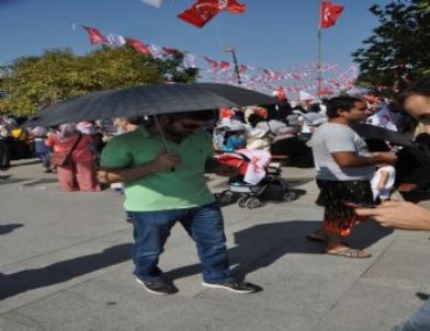 Yaklaşık 15 bin kişnin katıldığı mitingde, sık sık tekbir getirerek ‘Arakan yanıyor, Saadet’i bekliyor’, ‘Yaşasın Müslüman kardeş Arakan’, ‘Müslüman uyuma, Arakan’a sahip çık’ sloganları attı.Havanın sıcak olması dolayısıyla miting alanında zaman zaman bayılan vatandaşlar oldu