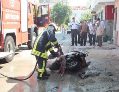 Kocaeli'nin Körfez ilçesinde seyir halindeyken alev alan motosiklet, itfaiye ekipleri tarafından söndürüldü.