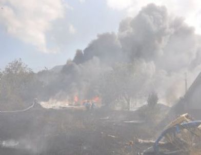 Manisa'nın Soma ilçesindeki sanayinin bitişiğinde yürekleri ağızlara getiren yangın çıktı.