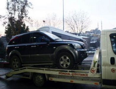 Beyoğlu’nda yaya üst geçidinden kopan beton parçası bir cipin üzerine düştü.