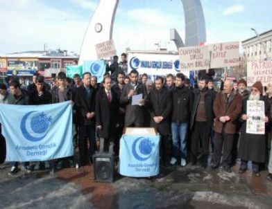 ‘Çekiç güç askeri istemiyoruz’, ‘Dünyanın birliği İslam birliği’, ‘D-8 olsaydı böyle olmazdı’, ‘Patriotlar gelmesin biz geliyoruz’ pankartları altında açıklama yapan Anadolu Gençlik Derneği Teşkilat Başkanı Habib Çimen, şunları söyledi: “Büyük Ortadoğu projesinin adım adım uygulandığı şu günlerde, ülkemiz birtakım dış güçler tarafından yumuşak lokma haline getirilmeye çalışılıyor. 22 İslam ülkesinin sınırlarının değiştirileceği bir haçlı seferi olarak ilan edilen Büyük Ortadoğu Projesi çerçevesinde, Arap baharı adı altında İslam ülkelerinde başlatılan iç savaş ve kardeş katliamına Türkiye’de alet edilmeye çalışılıyor. Bu çerçevede, Elbistan'ımızın yanı başına kurulan Kürecik Radar istasyonunun ve Kahramanmaraş’ımıza getirilen patriot füze rampalarının ve bir o kadar da haçlı askerinin ülkemize getirilmesinin, tarihin asla affetmeyeceği bir hata olduğunu ilan etmek istiyoruz. En genel manada şu prensip, iyice bilinmelidir ki; oynanan bütün oyunların altında İsrail’i koruma ve büyük İsrail’i kurma planları vardır. Bu gerçeği tarih, bize bütün açıklığıyla göstermektedir.” Güvenlik önlemleri altında gerçekleştirilen eylem, olaysız şekilde sona erdi