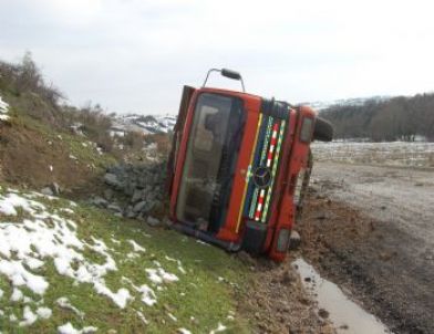 Taş Yüklü Kamyon Devrildi
