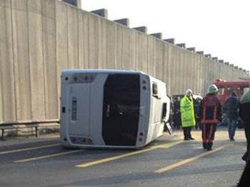 TEM Otoyolu Maslak mevkii Fatih Sultan Mehmet Köprüsü istikametinde çevik kuvvet polislerini taşıyan minibüs devrildi. 12 polisin yaralandığı kaza sonrası otoyol, Ankara istikametine trafiğe kapandı.