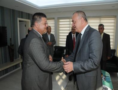 Manisa Belediye Başkanı Cengiz Ergün Kurban Bayramı nedeniyle başkan yardımcıları, meclis üyeleri, daire müdürleri ve belediye personeli ile makamında bayramlaştı.