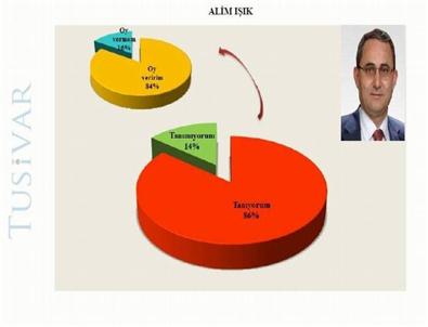 Ayrıca ankette birinci sırada olan Alim Işık, oyların yüzde 44'ünü AK Partili seçmenden, yüzde 36'sını MHP'li seçmenden, yüzde 14.33'ünü CHP, yüzde 0|67'sini SP'ye ve yüzde 4.33'ünü diğer partili vatandaşlardan aldı.