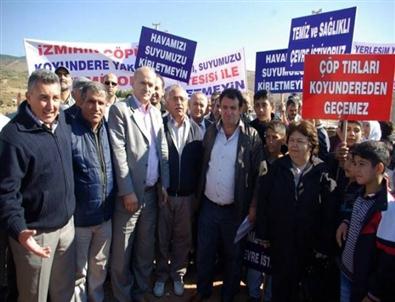 Eyleme katılan vatandaşlar ‘Ellerinde Temiz ve Sağlıklı bir çevre istiyoruz’, 'Havamızı suyumuzu kirletmeyin’, 'İzmir’in çöpünü Koyundere yakınında istemiyoruz’ yazılı afiş ve dövizler taşıdı. Koyunderelilere destek veren Menemen AK Parti İlçe Başkanı Arif Kuran, Menemen’e daha önce de Seyrek Ovası’na çöp bertaraf etme tesisi yapılmak istendiğini söyledi.