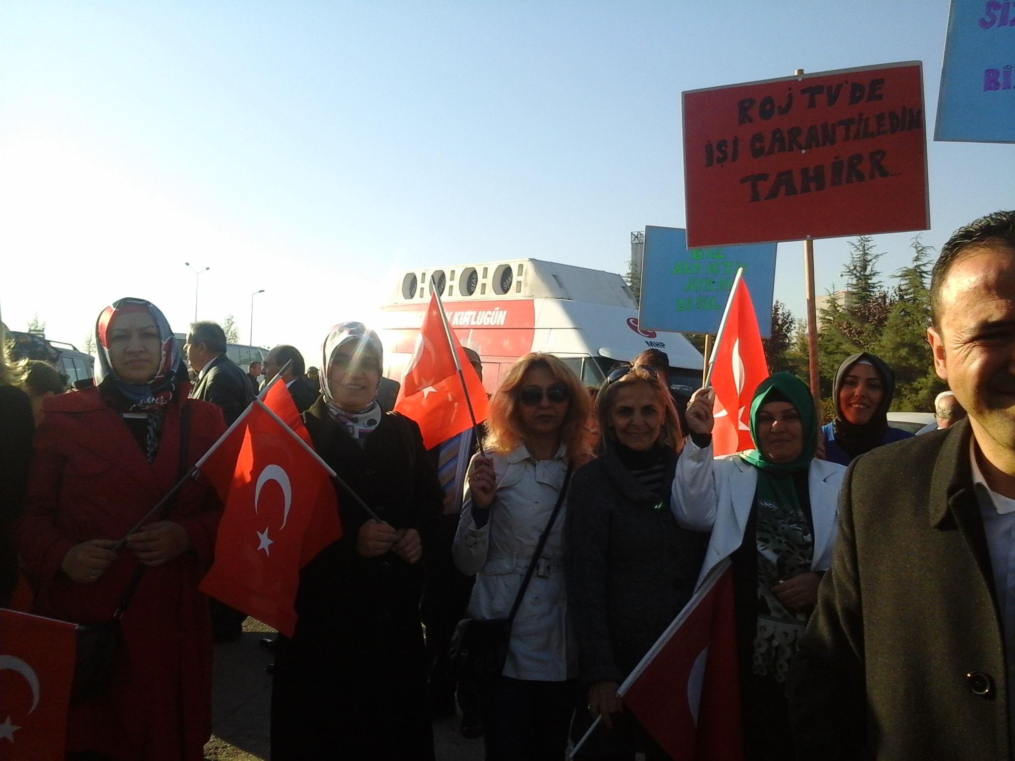 MHP'liler pankartlarında'Biz ayran içmedik and içtik, elveda Beyaz TV, merhaba ROJ TV, Akil Tahir'sloganları atan gruba andımızın kaldırılması nedeniyle tepki gösterdi. Polis geniş güvenlik önlemleri aldı. Daha sonra andımızı okuyan MHP'liler olaysız bir şekilde dağıldılar.
