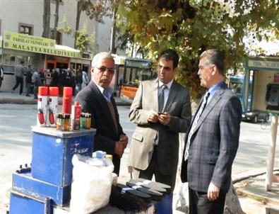 Aygün, kestane tezgahında da bir süre oturarak, seyyar satıcılar ile bir süre sohbet etti.