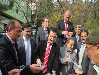 İlçe Kaymakamı Ahmet Özkan, Belediye Başkanı Ticabi Civelek, İlçe Müftüsü Aykut İli ve İlçe Emniyet Amiri V. Ali Köse, Merkez Camii önünde vatandaşa aşure dağıttı.